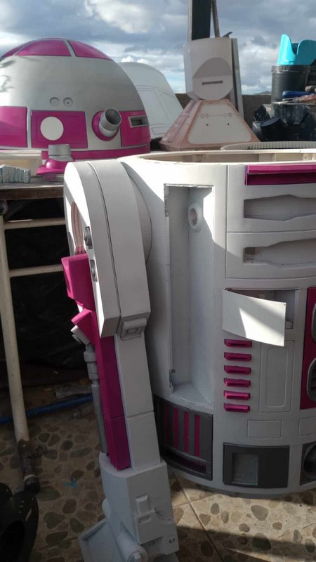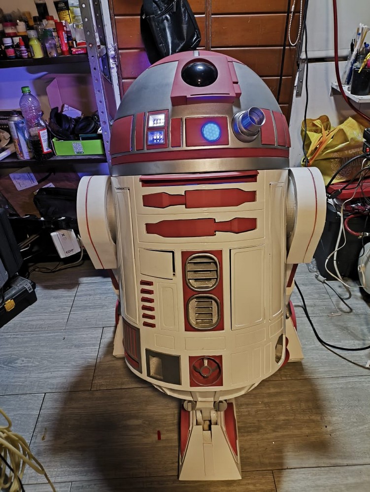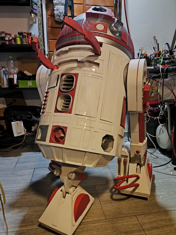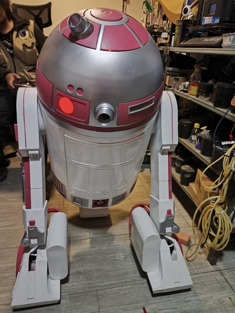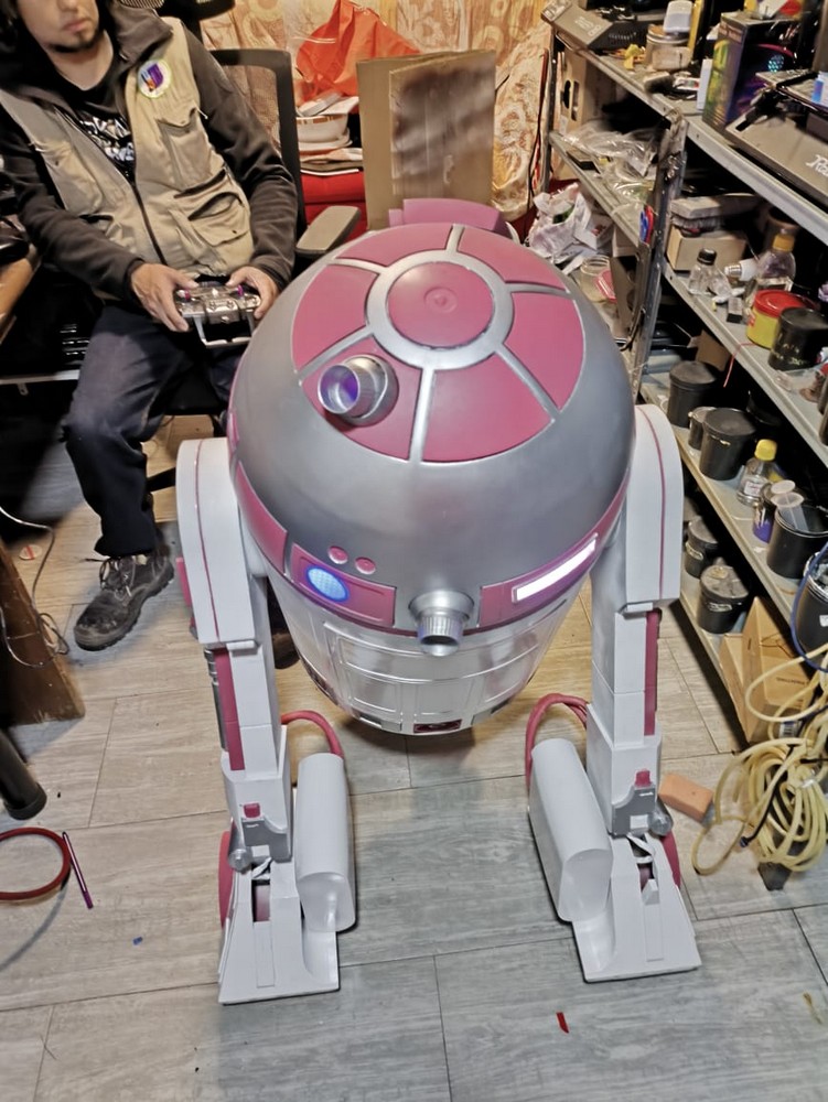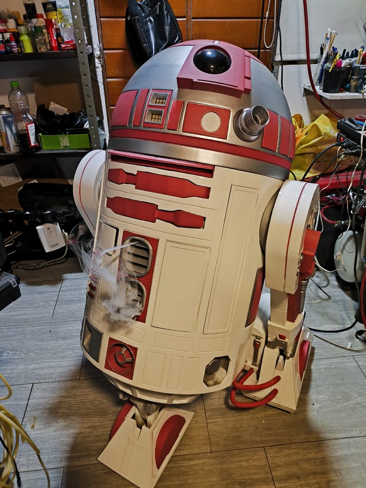 Dario Tigreros from Colombia is a 501st Legionnaire, a Rebel Legionnaire, and a Mandalorian. He wanted to build a replica of R2-KT to share with his fellow fans in Colombia. He has put enormous work into his 3d printed droid, fitting her with retractable arms, a smoke machine, and all the energy of a little hero droid!