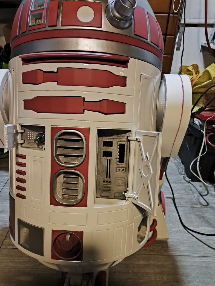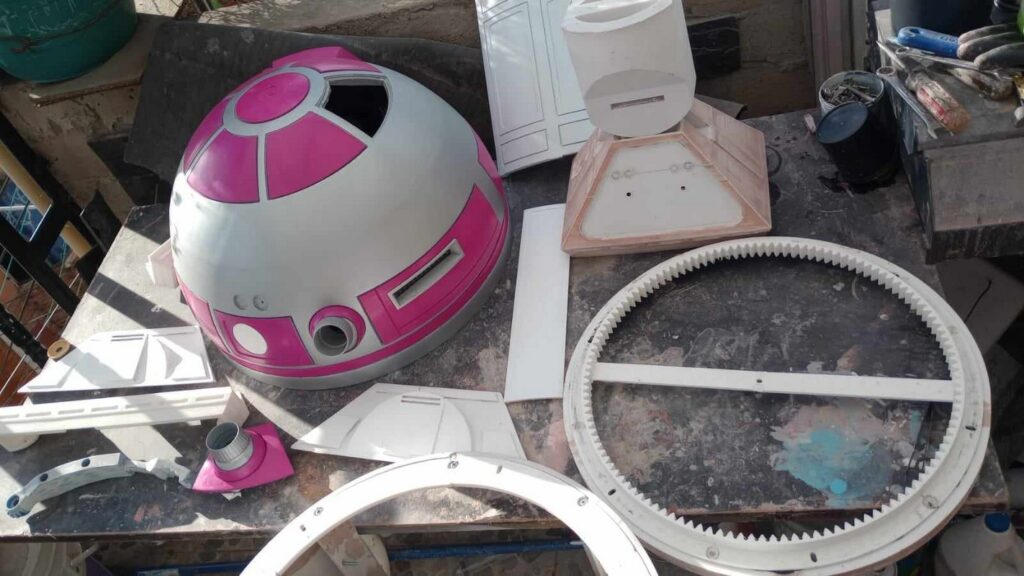 ● 3D Printing: FDM 3D printers were used to fabricate the droid’s parts. Special attention was paid to dimensional accuracy according to astromech.net plans and surface quality to ensure proper assembly and an aesthetic finish with automotive paint.