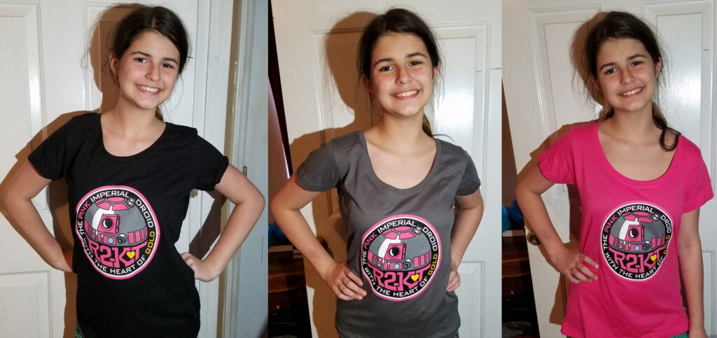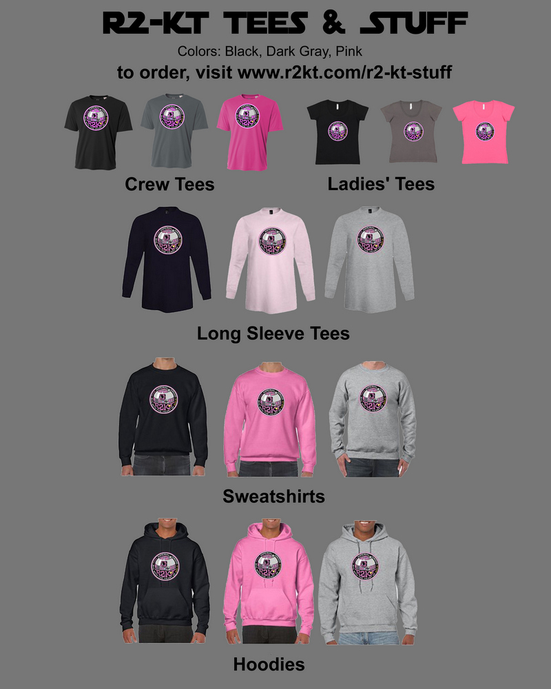 It is well ahead of the holidays and we’re running KT tees for everyone who’s been asking! Tees, long-sleeves, sweatshirts, hoodies, even ladies and youth options. Represent your favorite pink droid or get a gift for a droid-lover in your life. Place your order now and we’ll get them to you well in time for Christmas. Check out all the options. The links below take you to more information on each style.